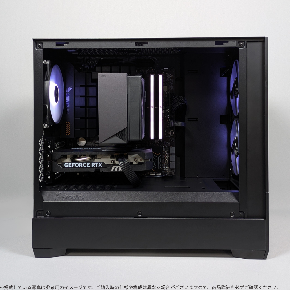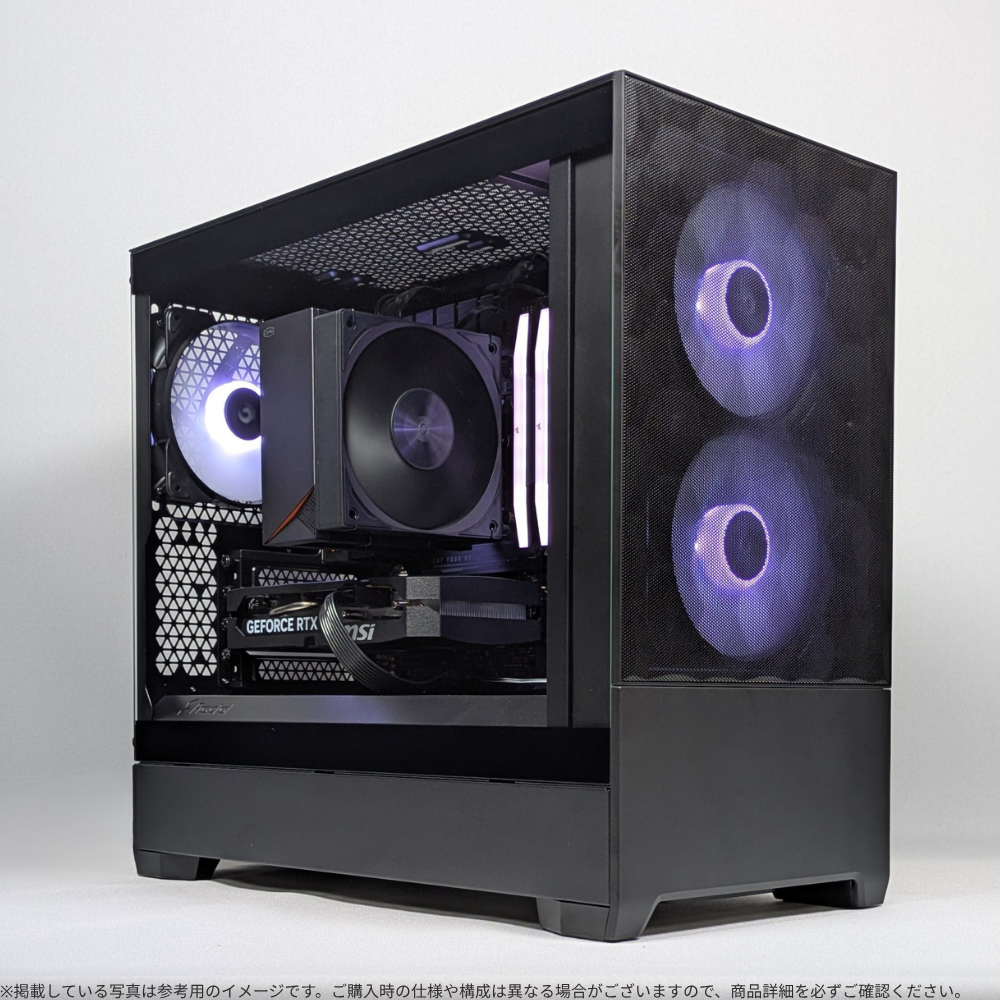 普段使いはもちろん、ゲーミングや動画編集などの負荷のかかる作業にも対応。スタイリッシュで洗練されたデザインと、落ち着きのあるブラックが映えるコンパクトなシルエットが、空間を引き締めながら上品に調和します。さらに、メッシュフロントによる優れたエアフロー設計で冷却性能も確保しています。