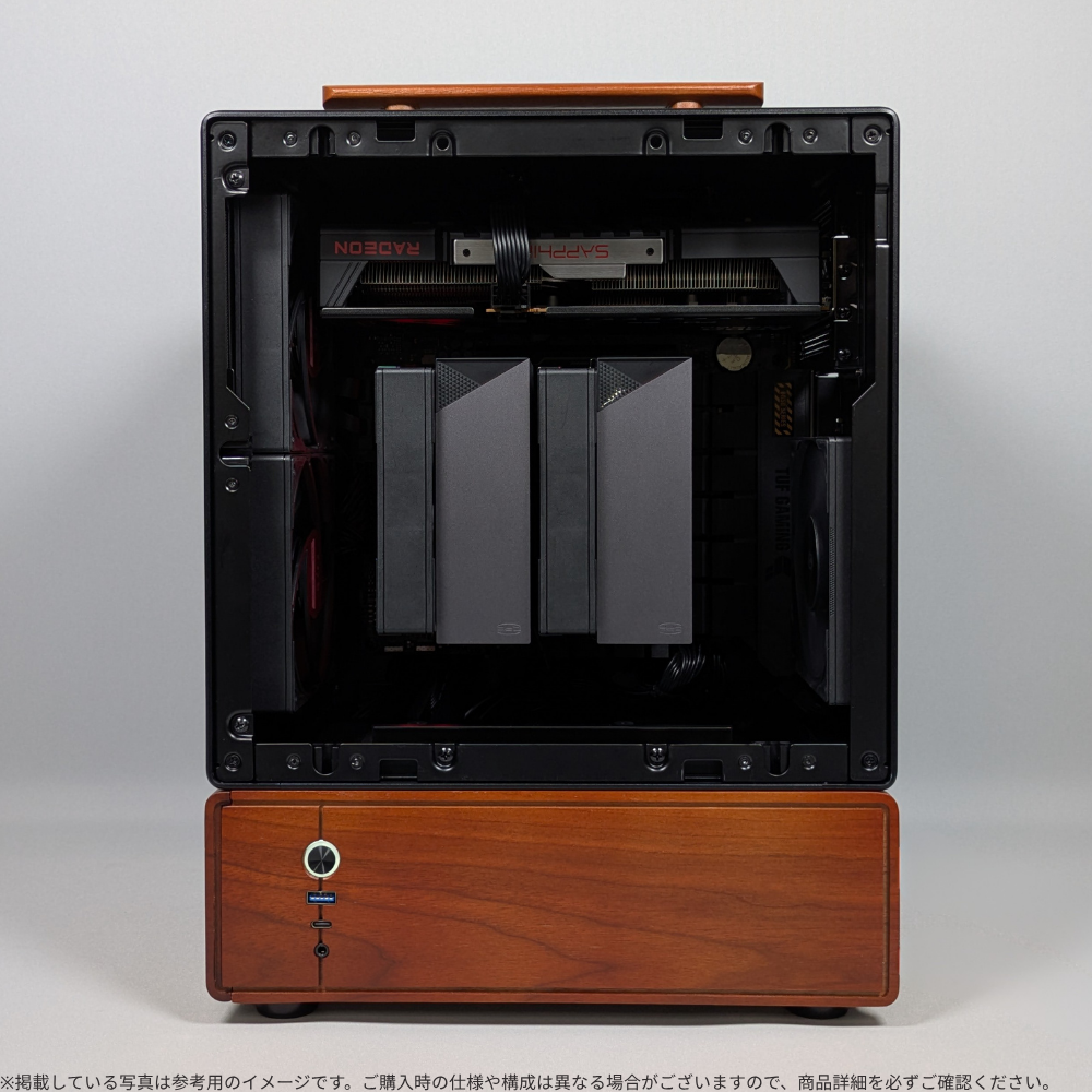 普段使いはもちろん、ゲーミングや動画編集などの負荷のかかる作業にも対応。シックなブラックボディーに下部チャンバーの木製パネルが温かみを添え、シックで落ち着いた印象を演出するモデルです。